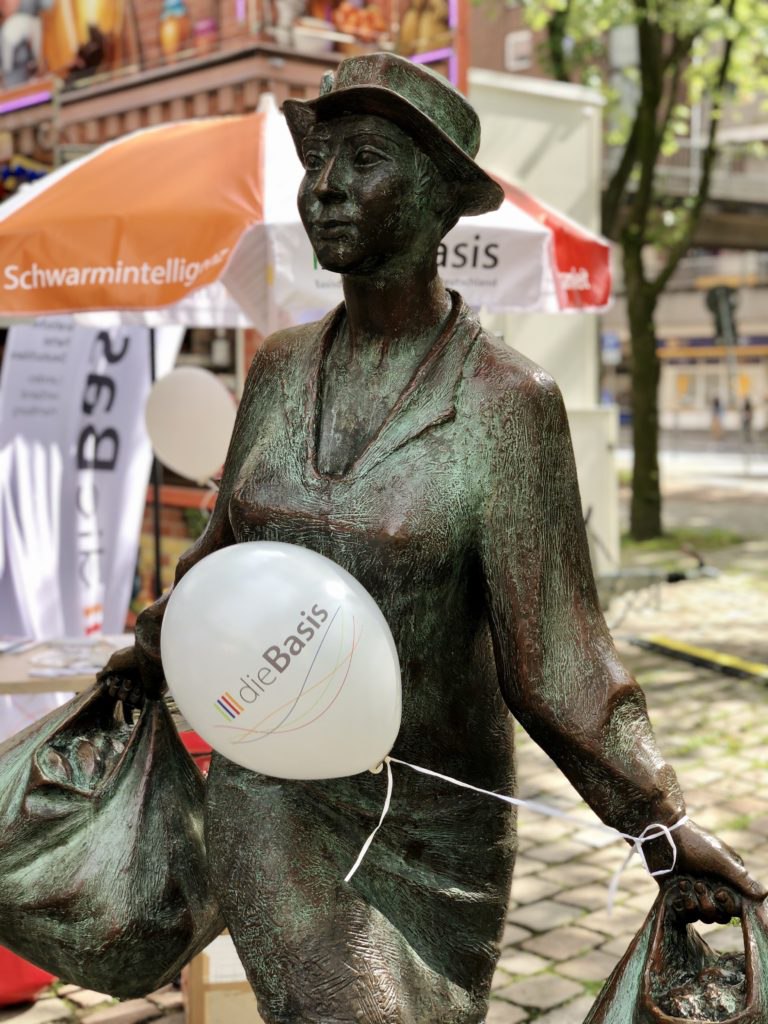In vielen Städten und Kreisen haben Mitglieder von die Basis ähnliche Infostände umgesetzt oder geplant wie in Hamburg. Warum soll das mit Strategie und Austausch im Schwarm von dieBasis und mit befreundeten Organisationen nicht bundesweit funktionieren? Wenn sich in jeder größeren Stadt, nur 5 bis 10 Leute zusammentun und kontinuierlich Infostände organisieren, sollten wir ein größeres Publikum für unsere Sache auftun können. Viele Mitglieder von dieBasis sind in vielen internen Gremien, Workshops und Veranstaltungen aktiv. Wir können und sollten uns wohl aber (auch) stärker und besser koordiniert nach außen wenden.